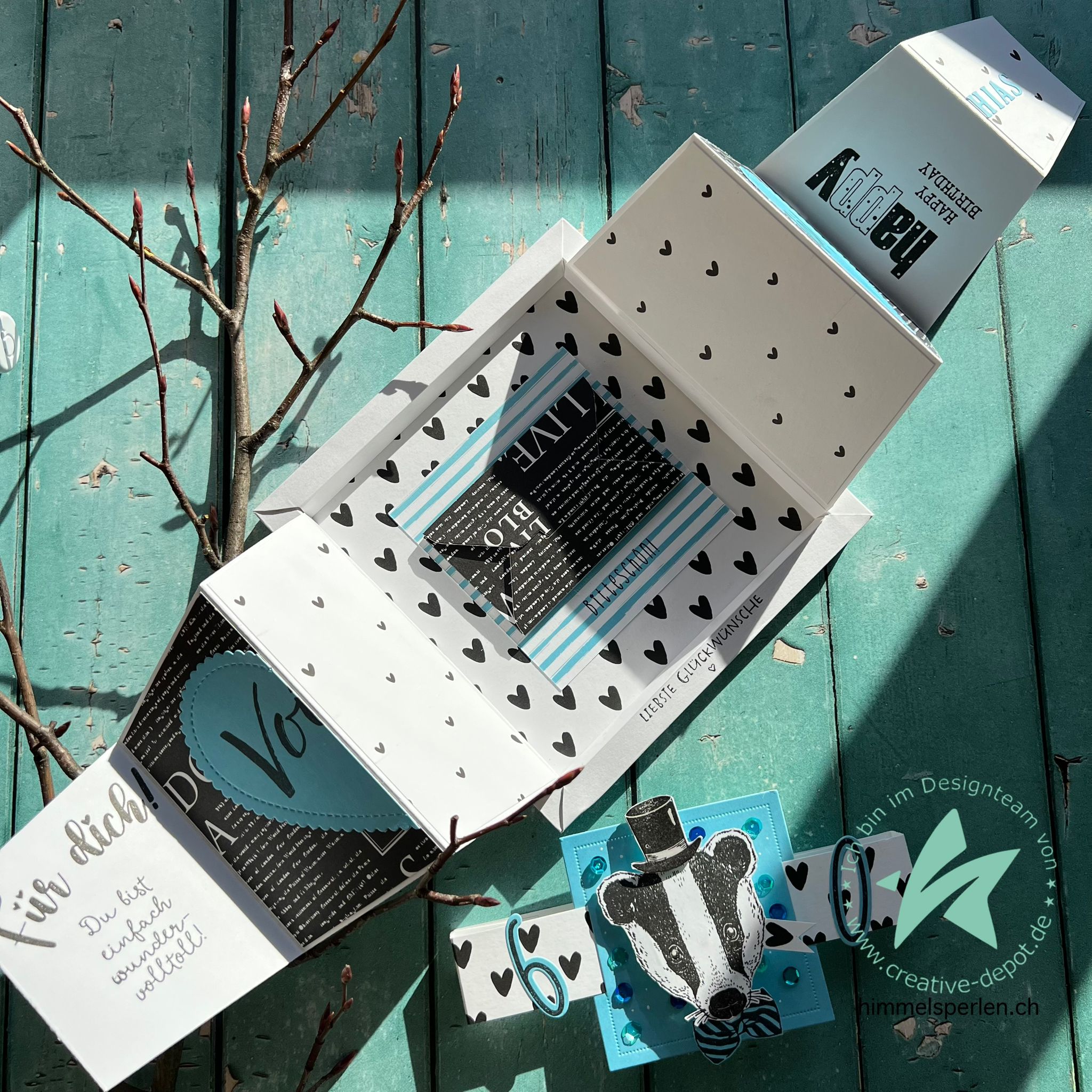 Design paper - Ankerfuchs Aquarellstreifen und Herzen