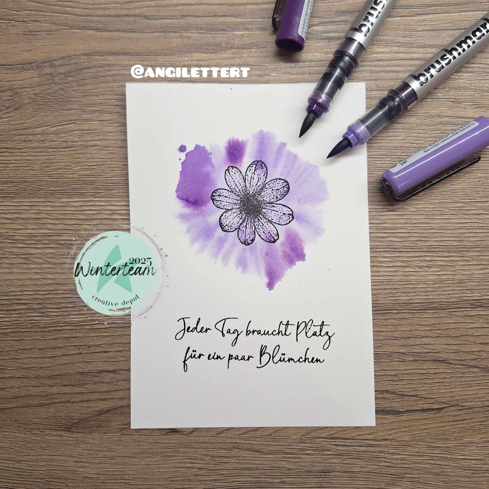 The brushmarkers are suitable for both hand lettering (on smooth paper) and watercolouring (on watercolour paper). As the brushmarkers give off a lot of colour, or rather are very juicy, it is better to use a smooth paper with a high grammage. If you want to watercolour with the pen, you should not allow the paint to dry completely before you paint it with the brush / water tank brush. This creates more beautiful and flowing transitions. For example, do not fill the entire surface of your motif with colour, but only colour in where you want the intensity to be strongest with the marker and then paint from there with the brush / water. If you hold the tip of the brushmarker on the paper for too long, the pen will lose a lot of colour and there is a risk that it will bleed through the paper.